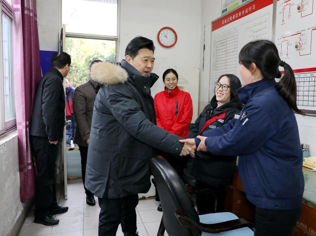 崔凤军一行先后来到学校改扩建专班办公室、河西配电房、河东青藤书院、校警务站、学校正大门、附属医院、兰亭校区,亲切慰问了寒假期间依然坚守岗位认真履职的教职员工,致以诚挚的问候,并代表学校党委行政送上了新春祝福和慰问品。
