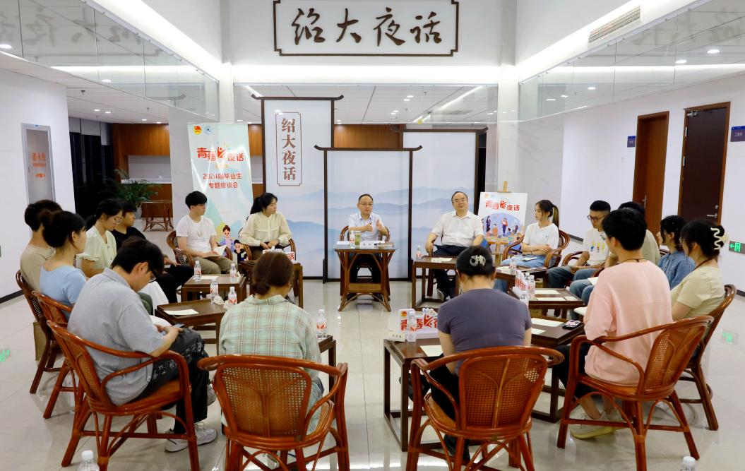 “母校永远是大家最坚强的后盾。”6月13日晚,“绍大夜话”第七期之“青春夜话”第五期在行政楼三楼中庭举行,校长赵阳与2024届毕业生代表面对面亲切交谈,畅聊校园学习生活,展望未来成长发展。党委副书记黄坚,办公室、发规处、学工部、招就处、校友办、校团委等相关负责人参加活动。