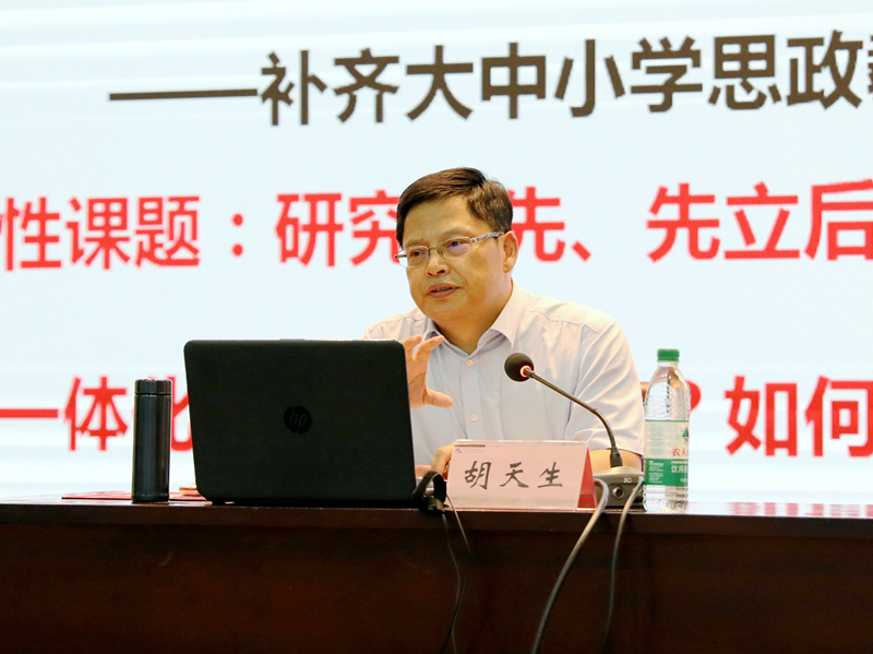 第二阶段研修活动,邀请了教育部大中小学思政课一体化共同体(浙江省)牵头高校浙江理工大学马克思主义学院的胡天生院长作辅导报告。他从全国大中小学思政课一体化建设情况讲起,介绍了浙江省开展思政教育一体化的总体工作理念、思路、举措,分享了浙江理工大学深入推进的系列经验做法。