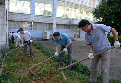 为迎接全国文明城市复查,以崭新的面貌迎接新学期,营造干净整洁的校园环境,9月18日下午,校党委书记汪俊昌,副书记唐和祥、沈赤,副校长华小洋,党委委员柳国庆、宣绍龙、陈均土参加义务劳动,整治校园环境卫生。