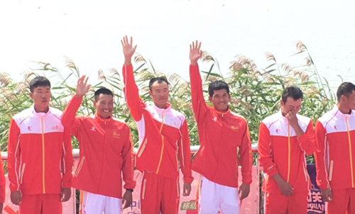 体育学院学生王丛康(右一)获得全运会皮划艇静水1000米四人皮艇亚军