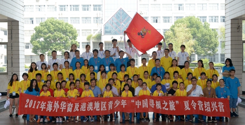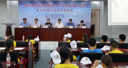 7月25日上午,来自9个国家和地区的58位海外华裔及港澳地区青少年齐聚我校,参加为期12天的2017年海外华裔及港澳地区青少年“中国寻根之旅”夏令营浙江营绍兴分营活动。开营仪式在学校图书馆报告厅举行。绍兴市副市长顾涛;校党委副书记沈赤;绍兴市侨联主席、外侨办副主任张小华;校党委委员,统战部、宣传部部长陈均土;越城区委常委、统战部部长王姿琴参加开营仪式。