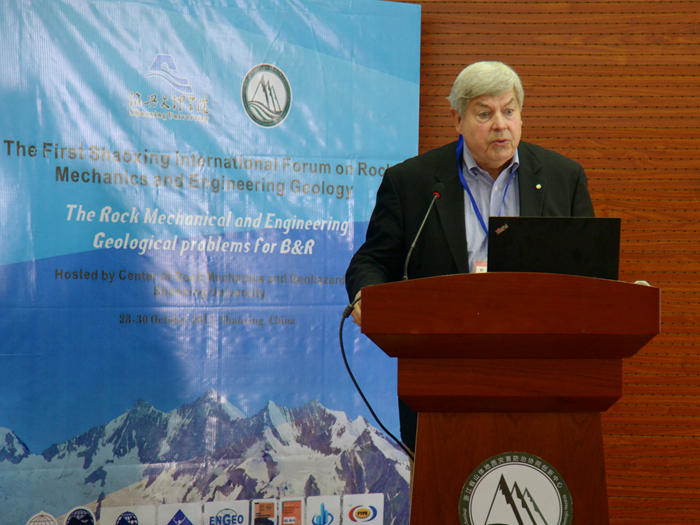 IAEG主席Scott Burns教授在发言中指出,“一带一路”不仅是一条文化之路,也是一条学术之路。在这个区域内,可以开展许多相关的研究,包括一些水文地质的检测,地质灾害防治监控等工作。他希望本次论坛能够和中方在岩石力学等方面加强合作交流,共同分享一些防治经验,提供有效的技术帮助。