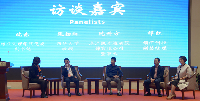 校党委副书记沈赤作为访谈嘉宾,围绕“运动休闲+”纺织产业技术创新战略联盟成立的起点、使命和主旨等内容,在论坛上发表演讲。他表示,当前全国上下正在掀起深入学习贯彻十九大精神的热潮,习近平总书记站在历史和时代的高度鲜明地提出了新时代中国特色社会主义思想和基本方略,深刻地回答了新时代坚持和发展中国特色社会主义的一系列重大理论和实践问题。学习十九大报告令我们非常振奋,增强了我们发展的信心,找到了发展的新动能。在报告中,习近平总书记首次提出了要支持民营企业发展,强调要把发展的着力点放在实体经济,首次提出要加强支持中小企业创新,要对传统产业进行优化升级,并提出要构建亲清新型政商关系。刚成立的创新战略联盟作为一个“政、产、学、研、金、介、用”的联盟完全符合新时代发展要求,也是绍兴改造提升传统产业、振兴实体经济,实施创新驱动发展战略的重要战略选择。