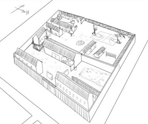 解放战争时期在今日银泰城办学旧景恢复图初稿