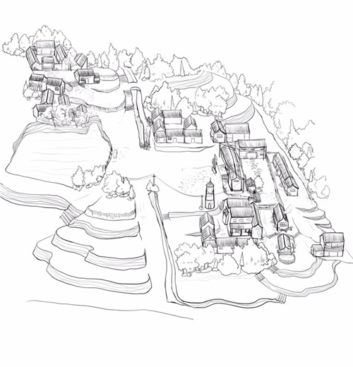 抗战时在敌后山区稽东乡南山村办学旧景恢复图初稿
