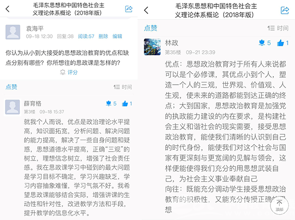 “习近平总书记指出,我国高等教育发展方向要同我国发展的现实目标和未来方向紧密联系在一起,为人民服务,为中国共产党治国理政服务,为巩固和发展中国特色社会主义制度服务,为改革开放和社会主义现代化建设服务。请大家思考一下,你最希望从大学获得什么?”在《马克思主义基本原理概论》第一课上,该校王明亮老师结合《讲义》第四讲,向英语(师范)专业的同学进行了在线课堂提问,学生们拿出手机,利用超星学习通平台将答案发送到屏幕上,与老师共同探讨,“灌输”变为“恳谈”的教学模式增强了师生之间的良好互动。