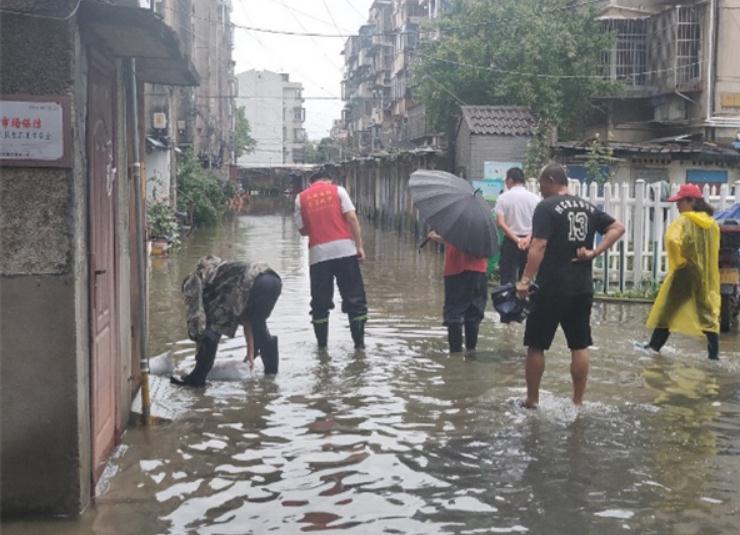 绍兴文明网7月28日:小区路面被淹!绍兴这所高校连夜组建“师生党员服务队”