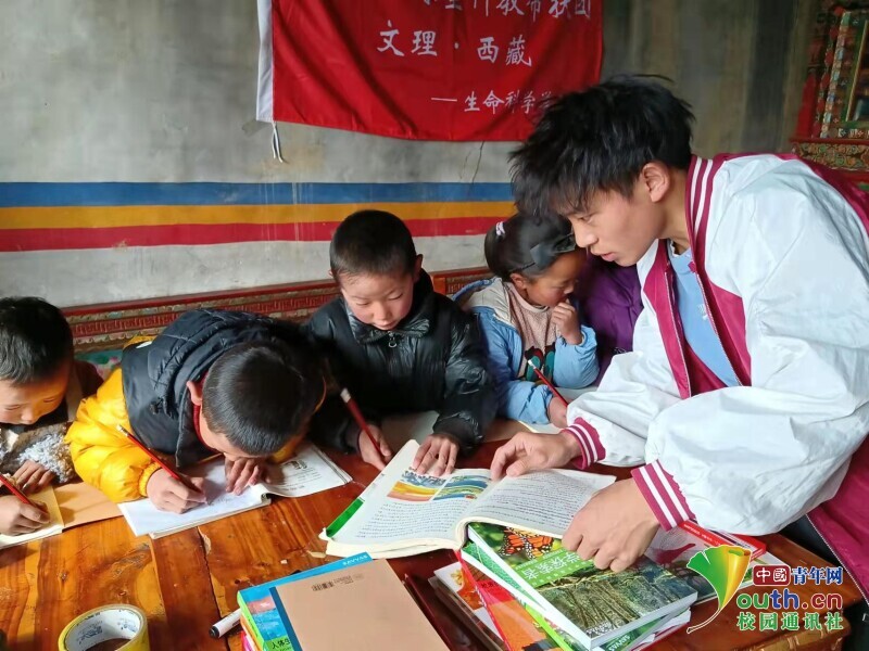 图为藏族志愿者正在给学生上课。中国青年网通讯员 徐琳峰 供图。