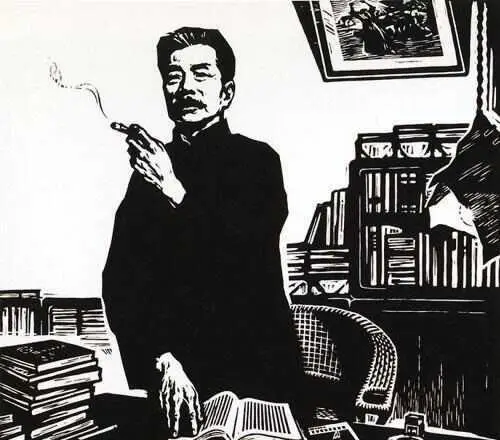 ▲鲁迅手中夹着香烟的木刻版画。 受访者供图