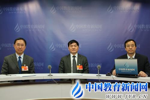 图为全国政协常委、安徽省教育厅副厅长李和平(中),全国人大代表、久久精品一区二区|久久久一区二区三区|欧美日韩视频|欧美福利视频|高清欧美性猛交xxxx黑人猛交|久久久www成人免费精品|在线观看成人网站院长叶飞帆(左)接受采访。(中国教育新闻网 刘继源 摄)