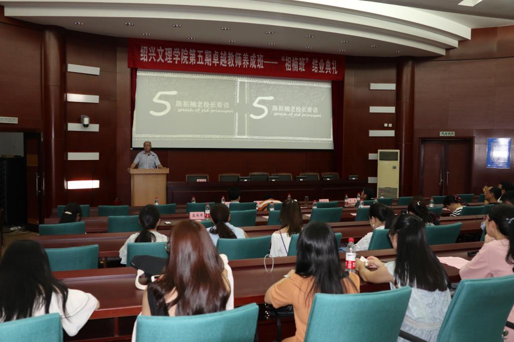 老校长陈祖楠,教务处、教师教育学院相关负责人,校内外导师,第五期“祖楠班”全体学员,第六期“祖楠班”学员代表等参加结业典礼。