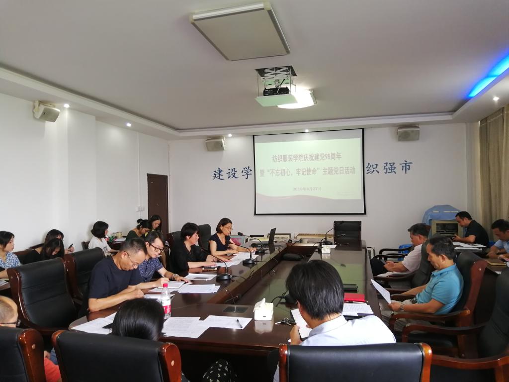 在“七一”建党节来临之际,纺织服装学院党委开展了庆祝建党98周年暨“不忘初心、牢记使命”主题党日活动。