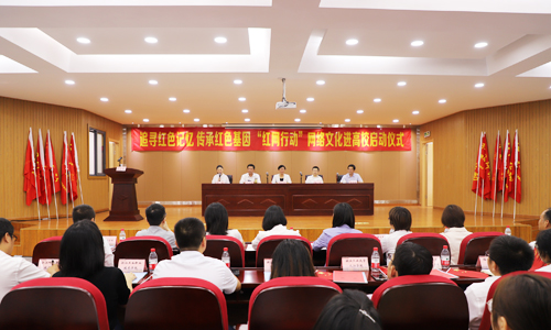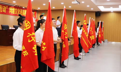 启动仪式上,与会领导为11所高校代表授旗,标志着“红网行动——网络文化进高校”主题活动正式启动。庆祝新中国成立70周年之际,全场人员共同挥舞着小国旗,齐声高唱《歌唱祖国》,祝愿伟大祖国繁荣昌盛。仪式后,在绍11所高校代表一同参观红色学府。