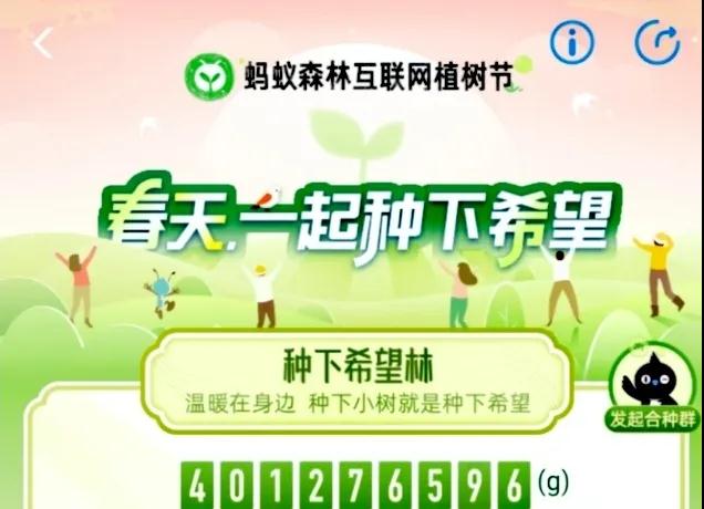 2020年3月12日,是第42个植树节,我校化学化工学院学生会和化学与新材料科普基地共同参加了支付宝蚂蚁森林“春天,一起种下希望”网上植树活动。让大家可以利用疫情期间,宅家中的低碳生活获得的能量,种下一颗颗小树,通过互联网植树的方式增强环保意识,传递绿色的希望,为奋战在防疫一线的逆行者加油。