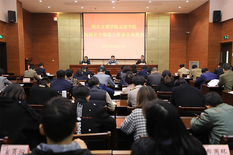 4月14日下午,元培学院召开校园安全稳定工作动员部署会,深入贯彻落实中共中央、省委省政府、市委市政府系列会议精神及学校党委的指示要求,部署和落实当前及今后一段时期内校园安全稳定工作,学院党政班子成员出席会议,学院全体中层干部、辅导员参加会议。