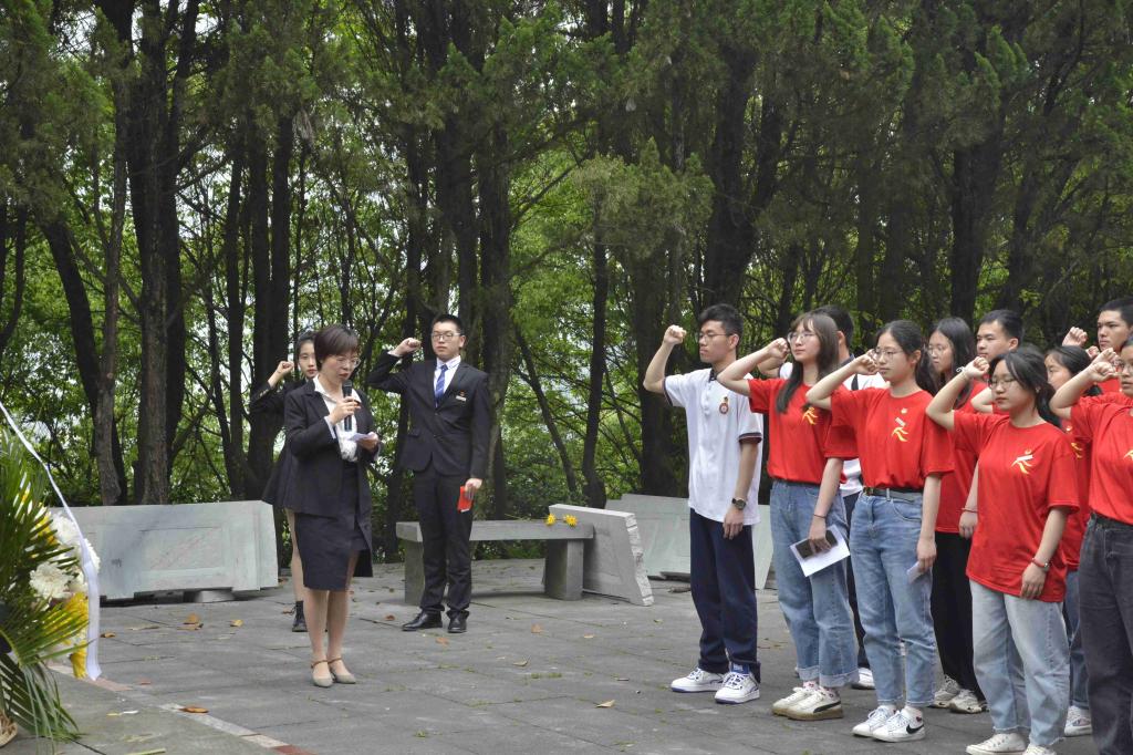 随后大家来到俞秀松烈士陵园,向俞秀松烈士三鞠躬,向烈士纪念碑敬献花篮并默哀。在校团委副书记刘灵娟老师的带领下,大家右手举拳,重温了入团誓词。活动在中国共产主义青年团团歌声中圆满结束。