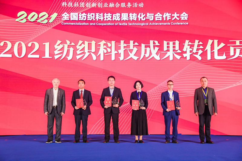 10月20日上午,由中国纺织工程学会、宿城区人民政府等主办的2021全国纺织科技成果转化与合作大会在宿迁市举行。会议开幕式环节,举行了2021年全国纺织纺织科技成果转化贡献奖颁奖仪式,我校纺织服装学院教授邹专勇作为全国5位获奖人之一,由中国工程院院士蒋士成、青岛百草新材料股份有限公司董事长黄效华颁奖。