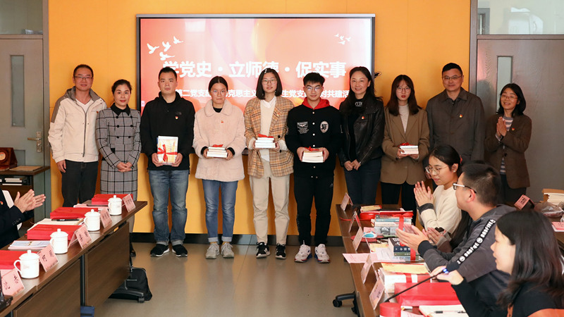 会上举行了机关第二党支部与马院学生党支部“三联系”结对仪式,机关第二党支部党员干部向结对学生赠书。