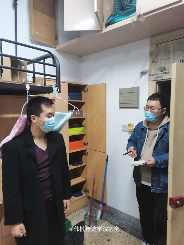 学院辅导员王伟楠,积极驻校参加防疫工作,充分发挥党员的模范带头作用。自疫情爆发以来,每天住在学校学生公寓,第一时间将学校、学院的防疫工作要求传达给所有在校学生,通过每天走访学生宿舍,及时关注疫情期间学生的思想动态,第一时间为有需要的老师和同学们提供帮助。身为分团委书记,指导学生会开展丰富多彩的活动来充实大家的课余生活,如:组织开展寝室云健身、线上辩论赛、最美寝室线上评选、线上英语等级考试交流会等,以用心、尽心、细心的原则,努力为学生提供更为丰富的课余生活,鼓励学生在寝室动笔、动手、动脑,帮助学生克服不良情绪干扰,回归正常的健康的心理状态。