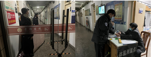增加门岗安保力量,从严从实守好防疫第一岗。I级应急响应期间,新宇物业管理骨干亲自上阵到门岗一线,在保卫处、学工部、后勤管理处、机关党委的指导和大力支持下,以热情饱满的专业态度仔细核验每一位进校人员的“三码”,“同学您好,请出示您的健康码、行程码,请用企业微信码扫码进校。”