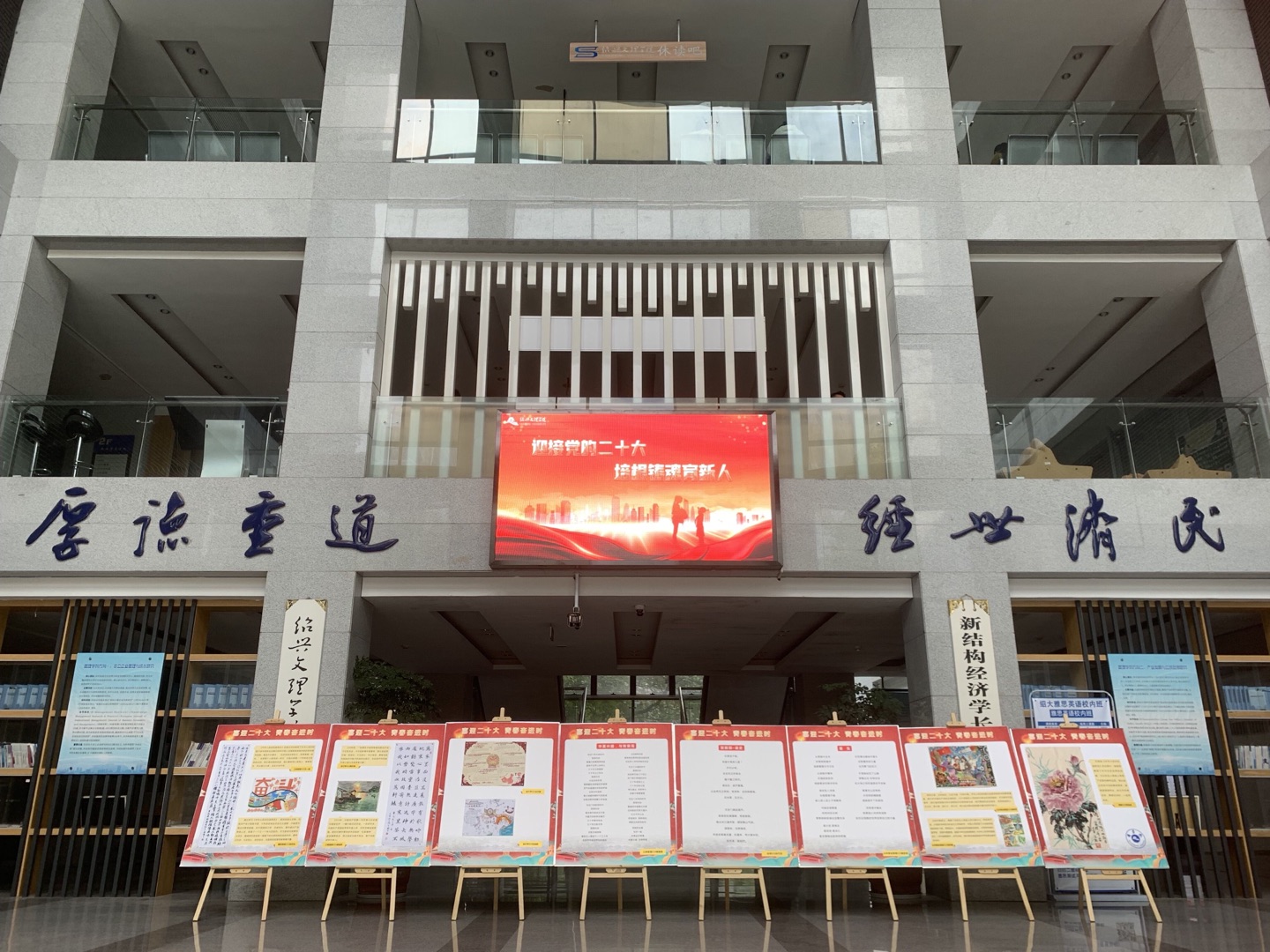 为着力引领广大青年学子听党话、跟党走,喜迎党的二十大召开,近日,商学院举办“喜迎二十大,青春奋进时”主题作品展。学生以书法、绘画、诗歌、征文等多样形式,讴歌党,讴歌祖国,讴歌人民,讴歌新时代。