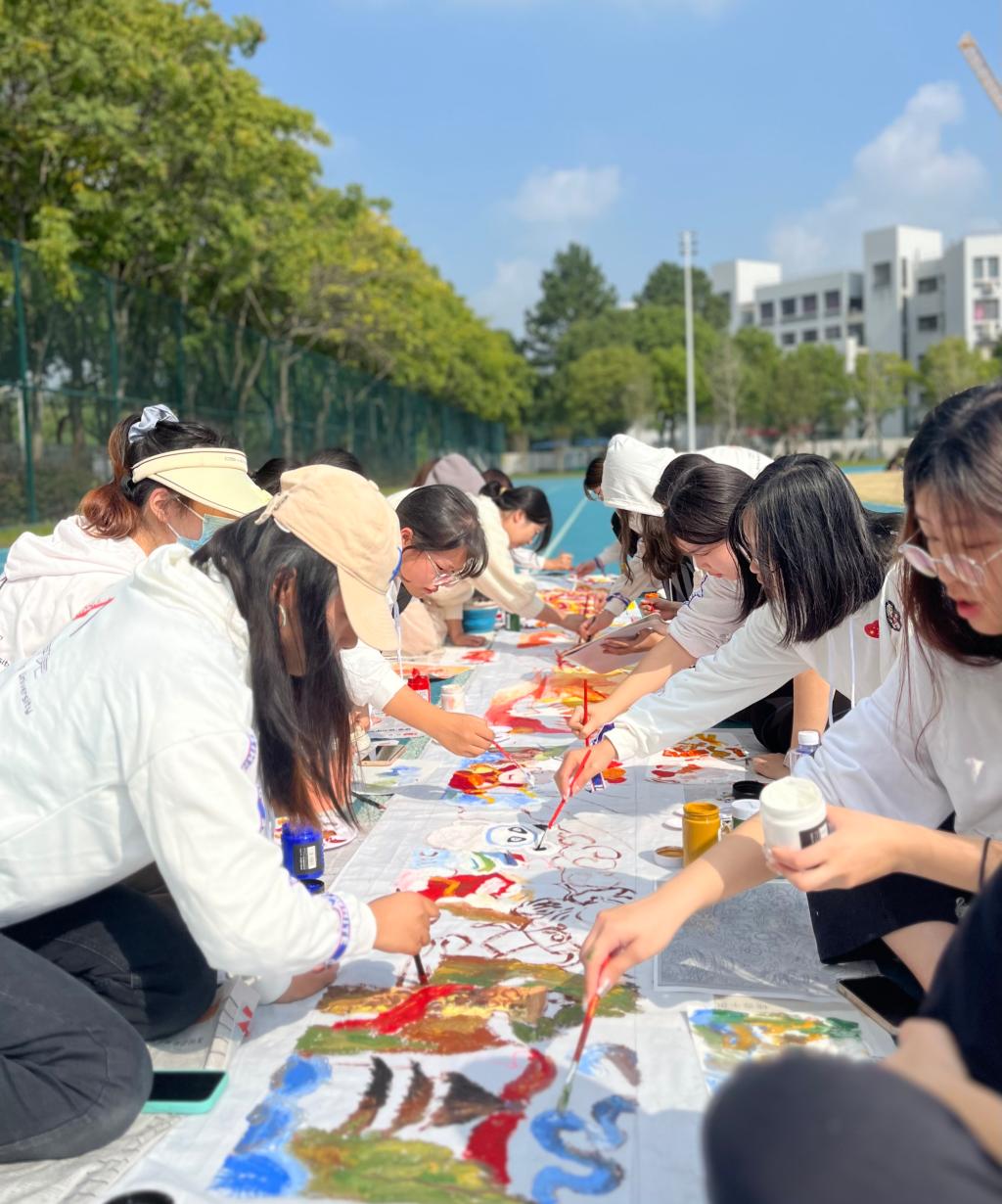 “共绘长卷祝福祖国”以“过去、现在、未来、祝愿”为主题,4幅画卷主要由美术、设计专业等75名学生共同绘画完成。