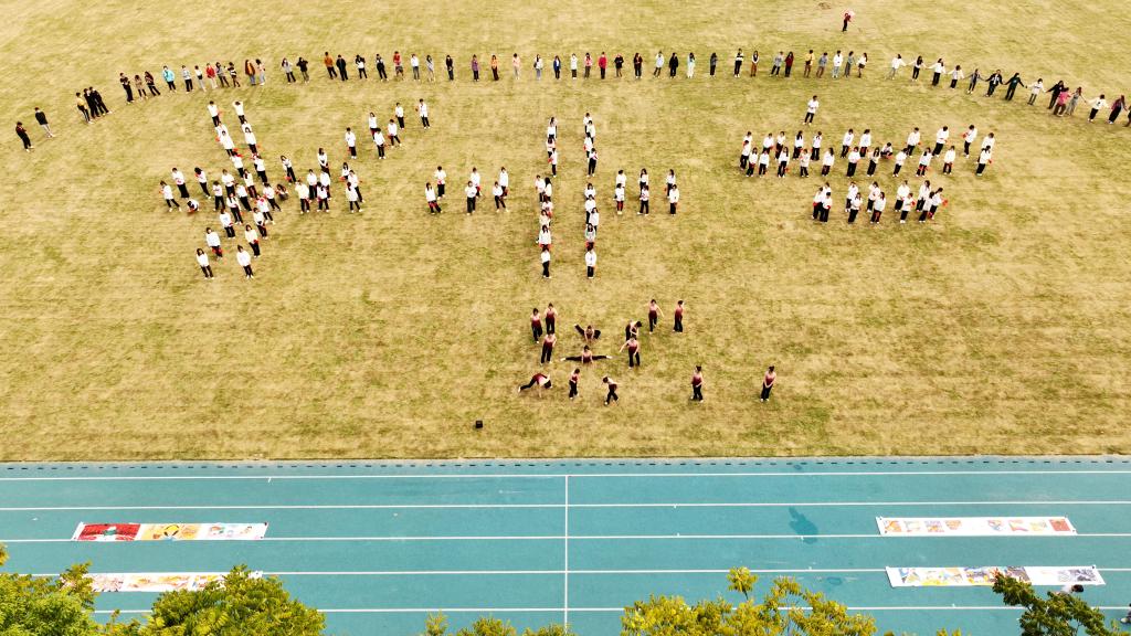 “共唱起舞《美丽中国》”,主要由音乐专业等105名学生共同排成“二十大”队列齐唱《美丽中国》,17名学生共跳《美丽中国》,师生党员、入党积极分子、入党申请人等160人围成同心圆共同祝福伟大的祖国。
