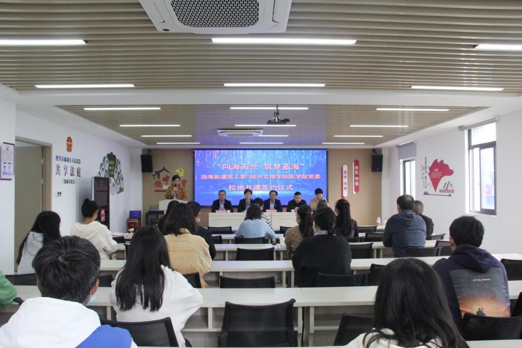 10月13日,医学院党委与越城区沥海街道党工委在沥海居委党群服务中心举行“向海而兴 筑梦蓝海”校地共建签约仪式。本次活动是继前期初步意向建立后,双方共同推进校地党建共建契约化“三全”强基工程的全新开端,标志着校地共建工作向前迈出了一大步。