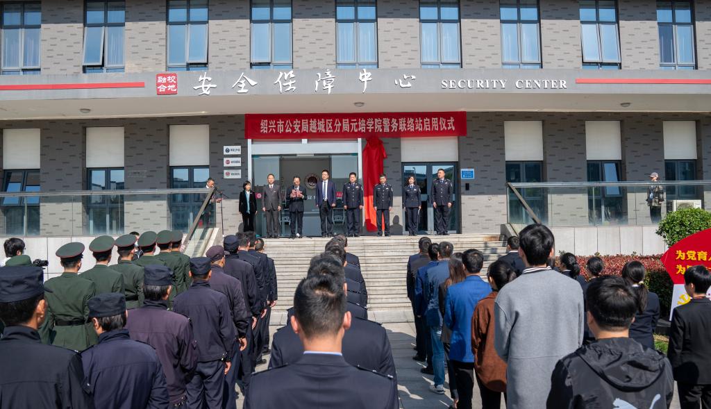 近日,绍兴市公安局越城区分局元培学院警务联络站启用仪式在元培学院图书馆一楼安全保障中心举行。校党委委员、副校长陈均土,市公安局党委委员、越城区副区长、分局党委书记、局长胡旭东,绍兴市公安局政保支队副支队长董建洲,分局党委委员、政治处主任潘瑜,分局党委委员、副局长金幸,学院党政领导班子成员,越城区公安分局各科室负责人、阿屈工作室民警、学院相关职能部门负责人、师生代表出席仪式。仪式由院长沈红卫主持。