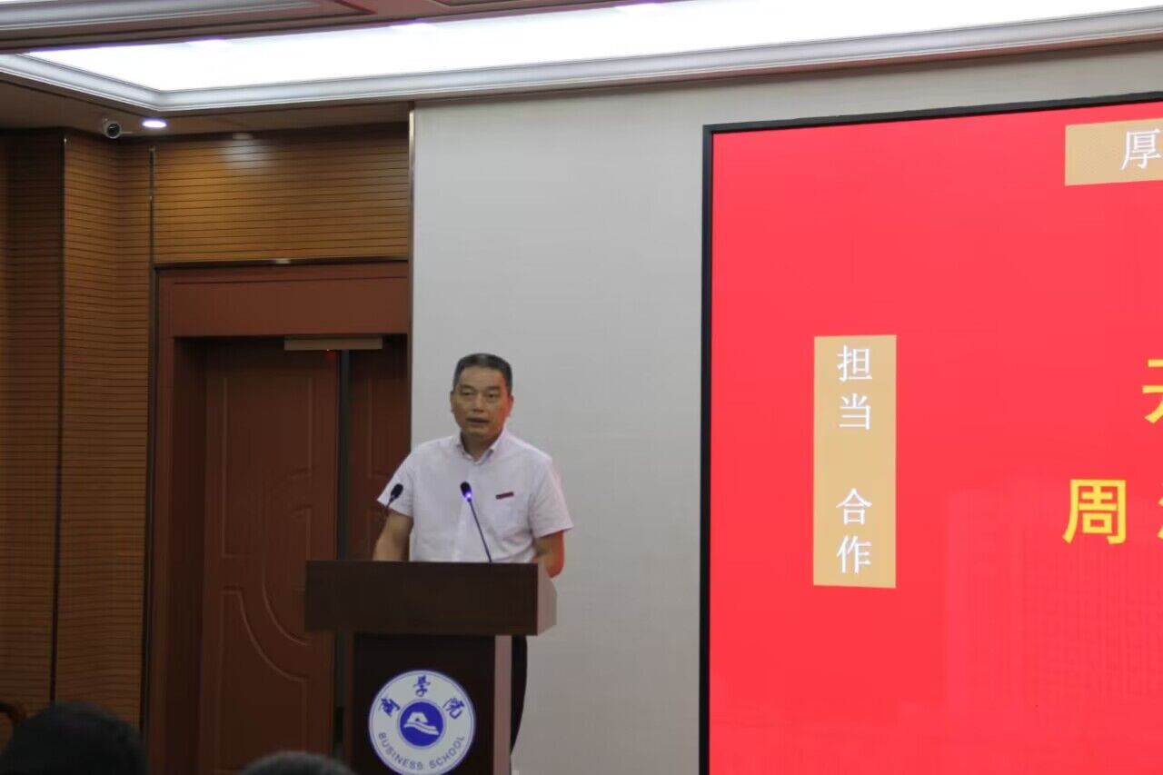 商学院从大一新生“新”特点出发,以新生始业教育为契机,围绕专业认知、学业规划、学习方法等内容,通过“院长第一课”“学工书记学业指导”“专业主任专业启蒙”“系书记职业生涯规划”“学姐学长经验谈”等多个模块,师者引领,朋辈示范,形成多维合力,引导新生扣好“人生第一颗扣子”。