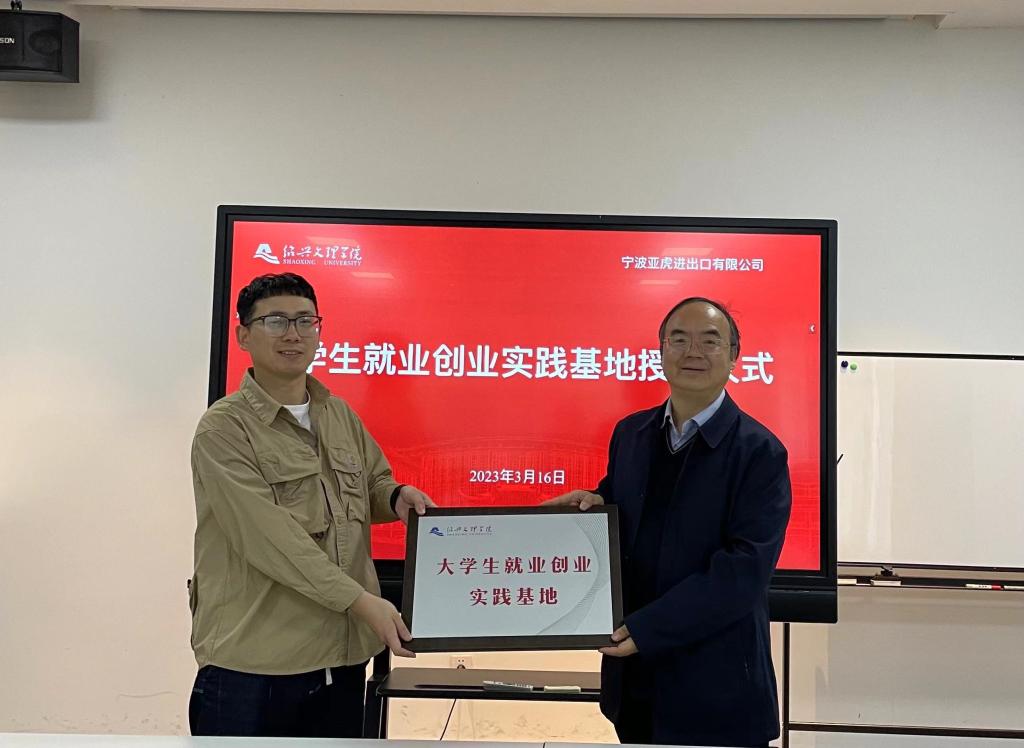 在宁波亚虎进出口有限公司、宁波亚晟照明集团有限公司办事处分别举行了签约与授牌仪式暨人才培养座谈会。黄坚表示,学校将全面推进学校内涵式发展,进一步完善人才培养与社会发展需求的对接,为地方发展贡献文理力量。同时他勉励校友要将个人的发展与企业的发展融合在一起,深耕专业领域,不断超越自我。