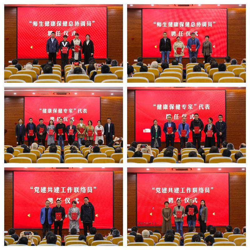 会议上,校医党建共建双方为“党建共建 健康发展”合作基地揭牌,相继聘任“师生健康保健总协调员”“健康保健专家”“党建共建工作联络员”。