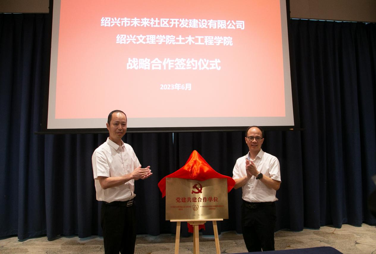 土木工程学院党委书记毛宇锋与未来社区公司副总经理黄文海共同为“党建共建合作单位”揭牌。土木工程学院副院长梁超峰代表学院与未来社区公司经理贾苏橙签订了战略合作协议,土木工程学院副院长黄睿签订了实习基地合作协议。