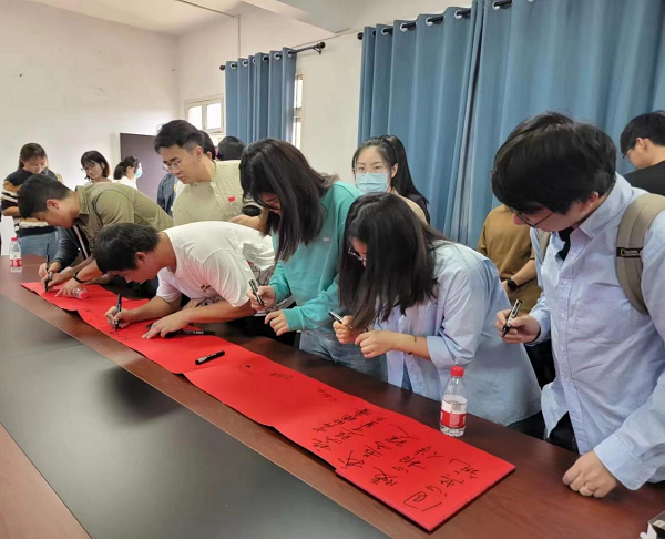通过学习、参观、走访活动,新进教师们了解到学校发展之初的艰辛历程和办学过程中的奋斗足迹,深刻感受到一代代文理人在学校办学路上修德求真、接续奋斗的拼搏精神,纷纷在留言簿上写下寄语和对学校建设与发展的美好祝愿。