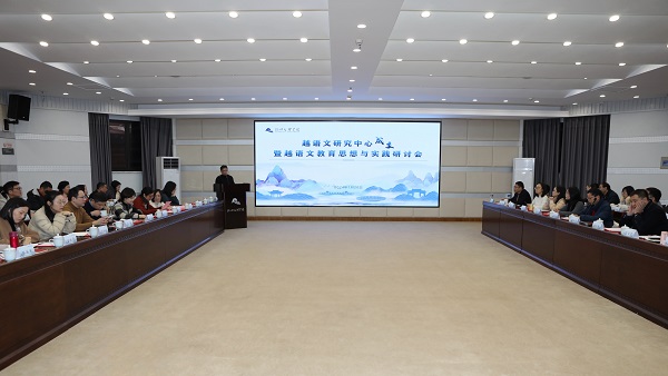 1月20日上午,越语文研究中心成立暨越语文教育思想与实践研讨会在学校图书馆一楼报告厅举行。副校长柳国庆,越地教育名家王松泉、周一贯,绍兴市教育教学研究院副书记、副院长戴军熔,浙江省知名特级教师董建奋,及学校相关学科研究人员、越语文名师等80余人参加会议。
