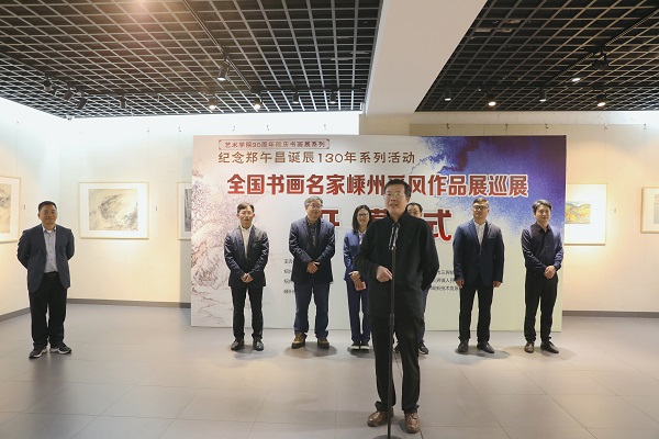 赵浪平宣布展览开幕。本次展览是纪念郑午昌诞辰130周年系列活动之一,展出的70余件作品是全国50余位艺术家到郑午昌家乡嵊州采风写生而创作的精品力作。画种齐全,题材多样,风格迥异,包括国画(山水、人物、花鸟)、油画(油画棒)、版画、水彩画、书法等,展期为4月1日-4月6日。