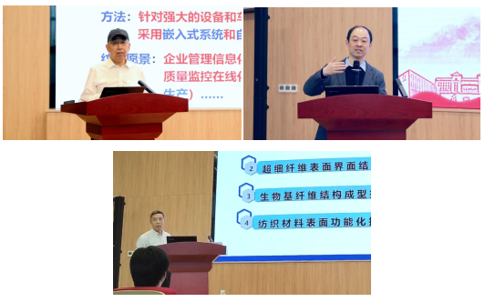 特邀专家程隆棣教授、方剑教授、魏取福教授分别就纺织产业面临的困境及现有应对措施存在的问题、利用电活性纤维材料实现压电/摩擦电产能、柔性传感和纤维基能量存储方面、纺织材料表面和界面功能化的新方法和技术途径以及应用等方面作专题报告。