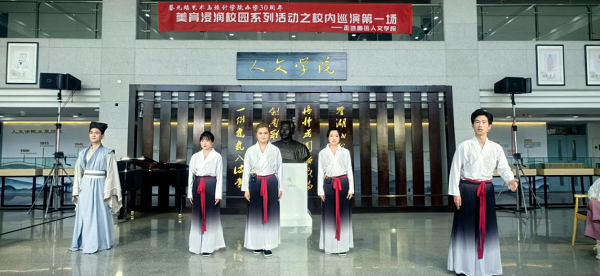 为活跃校园文化氛围,深化校园美育教育,促进不同学院之间的文化交流与融合,5月15日下午,蔡元培艺术与设计学院办学三十周年系列活动“美育浸润校园巡演第一场——走进南山”在鲁迅人文学院顺利举办,本次活动由蔡元培艺术与设计学院和鲁迅人文学院联合主办。副校长赵浪平,宣传部、蔡元培艺术与设计学院、鲁迅人文学院主要负责人参加活动,活动吸引了100余位师生到场欣赏。