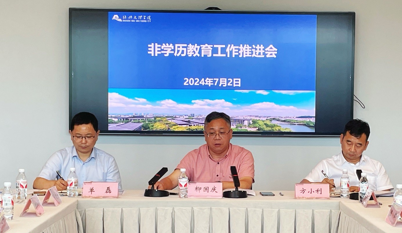 7月2日下午,学校召开非学历教育工作推进会。副校长柳国庆,教务处负责人、继续教育学院党政班子以及各二级学院书记参加会议。