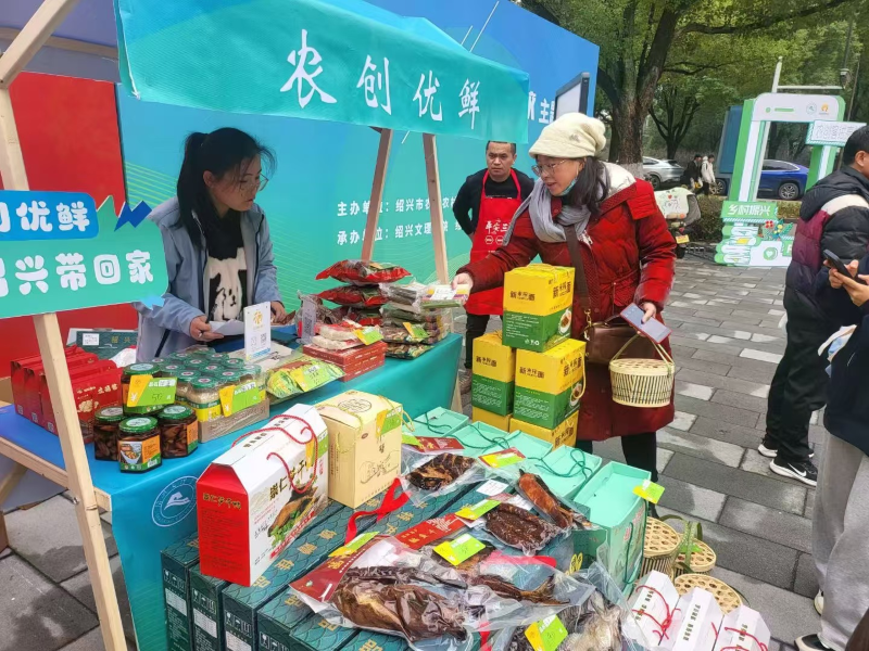 现场,农创产品种类丰富,充满了绍兴的地方特色,师生们在品尝美味的同时,也感受到浓浓的乡情与年味。