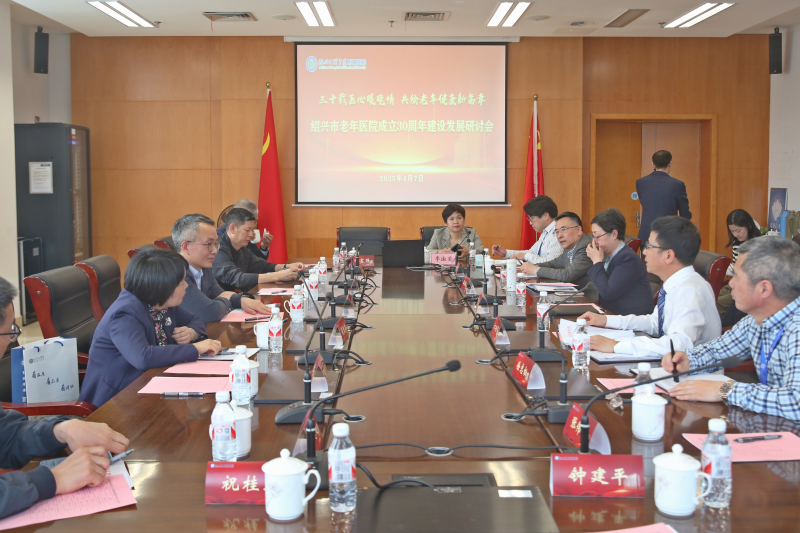 4月7日下午,绍兴市老年医院成立三十周年建设发展研讨会在附属医院举行。市人大常委会副主任闾小锋,市政协副主席徐泳,副校长柳国庆,市委副秘书长、市委改革办(市委政研室)常务副主任傅青春,市人民政府副秘书长徐丽东,市纪委、市监委派驻市委组织部纪检监察组组长范光明,市总工会党组书记、常务副主席黄伟英,以及市委老干部局、市民政局、市财政局、市卫健委、市老科技工作者协会、市老年人体育协会等单位相关负责人,各兄弟医院、街道负责人,医院全体中层干部等近200人齐聚一堂,共同回顾医院三十年发展历程,展望老年医疗健康事业新未来。医院纪委书记凌坚主持会议。