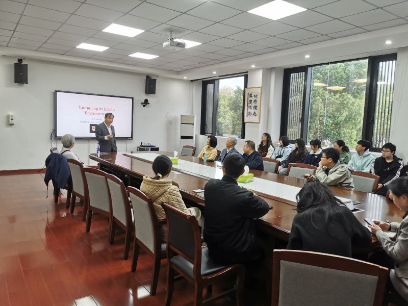 3月28日,深部金属矿智能开采与装备全国重点实验室、土木工程学院等承办的第36期“越崎土木讲堂”在志廉楼224会议室举行,新加坡工程院院士、新加坡国立大学梁春晖教授应邀作题为“城市环境中的隧道施工研究”的学术报告。新加坡工程院院士周迎新夫妇,同济大学俞剑副教授,土木工程学院王建国教授、郜会彩教授,岩土工程系主任郭鹏飞副教授、岩土工程系党支部书记周宇博士等相关教师及研究生参加了此次报告会。报告会由全省岩石力学与地质灾害重点实验室主任、土木工程学院学术委员会主任杨圣奇教授主持。