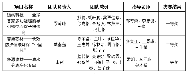 11月25日,由中国纺织服装教育学会、上海管理教育学会主办,江南大学承办的第七届中国纺织类高校大学生创意创新创业大赛决赛落下帷幕。本次大赛历经初赛、复赛,最终有40项作品进入决赛,其中我校共有3支队伍入围,共斩获一等奖1项、二等奖2项,在获奖数量与奖项等级上均实现突破。