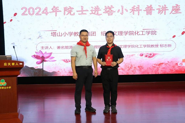 9月11日下午,绍兴市塔山小学崇德校区的三楼报告厅内,一场专为科学而设的盛会如期举行。绍兴市塔山小学党委书记蒋华卫、校长陈燕萍,我校化学化工学院党委书记徐青,挪威工程院院士、化学化工学院教授郁志新,化学系党支部书记刘海玲、副主任沈骐和塔山小学师生代表参加2024年院士进塔小科普讲座,并开展科学副校长聘任仪式。