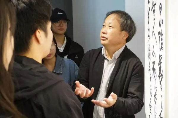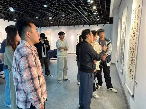 开幕式后,大家共同参观“二王书风展”与“新人展”,认真欣赏作品,细细品味其中的笔墨韵味与艺术表达。师生们在参观中交流讨论,进一步凝练交流书法技艺的细节与经验。