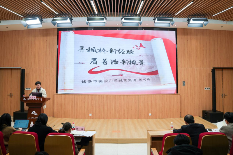 “认知、艰辛、团队、收获——这四个关键词可以作为参加本次协同教研活动的体会……”诸暨市荣怀中学思政课教师宣国荣不无感慨地说。12月6日上午,马克思主义学院主办的“‘枫桥经验’进校园‘真理味道’共品悟”绍兴市大中小学思政课一体化名师工作室协同教研活动在则江大讲堂107报告厅举办。绍兴市大中小学思政课一体化名师工作室联盟导师和成员、第二期绍兴市大中小学思政教育一体化骨干教师培训班全体学员、马克思主义学院师生代表等100余人参加。活动由马克思主义学院党委书记陈红主持。